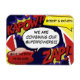 Um íman de casamento "Salve a Data" legal, engraçado e moderno. Cores escuras e vívidas, arte em quadrinhos e a mensagem "Estamos Combinando Nossos Superpoderes" Adicione data e nomes.