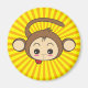 Uma ilustração de um rosto de macaco com bochechas azuis e sua língua saindo. Que bonito e kawaii. O fundo é um padrão alegre amarelo e laranja com raios solares a explodir à volta do fazer macaco que ele parece super poderoso.
