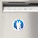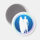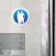 Surfista esperando por uma onda. Silhueta de surfista segurando seu conselho surf. Logótipo circular em azul.