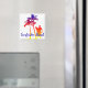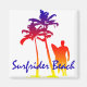 Este ícone clássico de surf apresenta um surfista de bordo olhando para as formas de debaixo das palmeiras em Surfrider Beach. Esta design é uma mistura de cores vibrantes. Estas designs vêm em várias cores.
