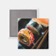 Feche a fotografia de sushi com caviar, sementes pretas de sésamo e algas.