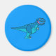 Tyrannosaurus rex, azul e médio. Ele é um grande chapéu.