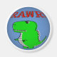 Um desenho animado e bonito, t-rex! Design de desenho original. Rawr! Ímanes personalizados. Dar ideia para adultos e crianças que amam dinossauros.