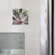 Este design apresenta uma imagem de alta definição de um gato-do-mato com cinzas e pelo preto e belos olhos verdes. Está a lamber com confiança a sua própria pata para se aliciar.