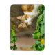 Uma tábua e um gato branco ficam sobre uma parede coberta de mariposa enquanto olham curiosamente para a câmera.