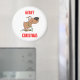 Cãozinho bonito enredado em luzes de Natal.