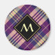 Design púrpura, ouro amarelo e tartã azul. Um padrão perfeito. Monograma personalizado