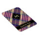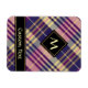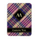 Design púrpura, ouro amarelo e tartã azul. Um padrão perfeito. Texto personalizado e monograma.