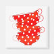 Um ímã de cozinha branco com pilhas de telas de bolinhas vermelha e branca. Um design de vintage fofo.