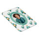 Make his big day unforgettable with this charming custom photo birthday magnet, perfect for celebrating a special guy turning another year older! Featuring a festive pattern of watercolor-style teal and faux gold balloons on a white background, this magnet adds a pop of playful elegance to the celebration. The soft teal oval frame highlights your child's photo, with his name and birthday greeting beautifully displayed in a whimsical font.