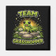 A cheerful, whimsical illustration of a cute grasshopper mascot celebrating teamwork, positivity, and playful nature vibes.