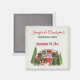 Magneta com um tema de Natal bonito e caprichoso. Um trailer aconchegante decorado para o sorteio de Natal entre alguns pinheiros.