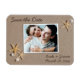 Casamento temático da praia salve os ímanes da data com uma foto no fundo de areia, estrelas e conchas. Modelo fácil de usar - basta adicionar sua foto e digitar os nomes do noivo e do noivo, juntamente com a data do casamento no espaço fornecido.