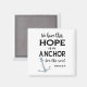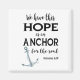 Na escrita negra lê-se, "Temos esta esperança como âncora para a alma." Hebraico 6:19. Há também uma âncora prateada.