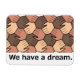 Mãos de várias cores da pele se aproximando — com o texto "Nós temos um sonho." Um design gráfico enselador de Susan EileenEvans