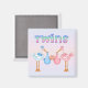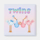 Presentes de Chá de fraldas únicos para a nova mãe ou mãe ser. Baby Onsies, convites, placas de posto, teclas, ímãs, favoritos para festas de botão, guardar canecas e muito mais. Cada Item pode ser personalizado com nomes e datas. Esta design é para uma menina e um gêmeo menino e tem cores rosa e azul.