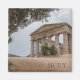 Fotografia de Souvenir das ruínas do antigo templo grego em Segesta, Sicília, em Itália, que, num dia nublado, via debaixo de uma antiga oliveira e o texto "Sicília".