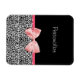 Um ímã flexível de impressão-leopardo preto e branco, com um arco de fita rosa giro embrulhado como um presente. Personalize adicionando seu nome. Presente perfeito para uma menina adolescente!