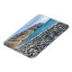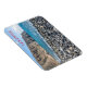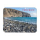 Uma bela vista de uma praia de seixos na ilha de Tenerife, nas Ilhas Canárias, impressa numa imã de geladeira de souvenir.