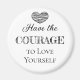 Citação inspiradora: "Tenha coragem de se amar". Afirmação motivacional em preto e branco.