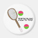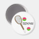 Um design divertido para o tênis. Uma raquete de tênis e duas bolas de tênis em rosa e verde.