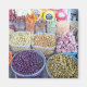 Uma variedade de azeitonas coloridas e deliciosas num estábulo de mercado em Lima, Peru.
