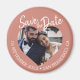 Ímã de terracota com foto e texto moderno para salvar a data, apresentando uma janela de foto em forma de coração, fundo quente de terracota e texto em letra manuscrita em branco. Este design exibe sua foto de noivado enquanto compartilha claramente a data e o local do casamento em uma paleta de cores terrosas ricas que se sente moderna e atemporal. Ideal para casamentos, celebrações de outono, eventos de destino ou renovações de votos com uma estética quente e natural. Personalize facilmente com seus detalhes.