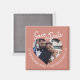 Ímã de terracota com foto e texto moderno para salvar a data, apresentando uma janela de foto em forma de coração, fundo quente de terracota e texto em letra manuscrita em branco. Este design exibe sua foto de noivado ao mesmo tempo em que compartilha claramente a data e o local do casamento em uma paleta de cores terrosas ricas que parece moderna e atemporal. Ideal para casamentos, celebrações de outono, eventos de destino ou renovações de votos com uma estética quente e natural. Personalize facilmente com seus detalhes.