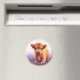 Um ímã com uma pintura aquosa de um filhote castanho adorável da Escócia Highland num campo de flores silvestres roxas. Um pedaço de decor escocês de Vaca Highland que é perfeito para o quarto de um bebê decorado no estilo de um quintal.