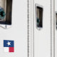 A exibição vertical correta da bandeira do Texas de acordo com o Texas Flag Code. A imagem é atribuída a: Tuckerresearch.