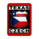 Design Tcheco do Texas, ao estilo de uma placa de rota legal americana. O texto Texas Checo está no topo e no fundo, com a bandeira do Estado do Texas e a bandeira da República Checa dentro. Excelente para Texanos de ascendência checa e para ex-pats no Estado Estrela Solitária.