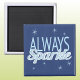 Este ímã tem uma citação estimulante de confiança: "SEMPRE Sparkle" com brilho azul claro. Há também uma dispersão de estrelas sobre um fundo azul profundo.