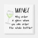 Divirta-se com este ímã! Excelente também para um negócio de vinho. Um copo de vinho branco está inclinado em direção à palavra design de texto que diz "Vinho, por que pedir um copo quando você pode pedir a garrafa inteira?" Trendy, engraçada e humorada, esta arte criará um sorriso e comentários. Fácil de personalizar. A arte original e a design são da artista Phyllis Dobbs. As cores são verde limão e preta. Totalmente personalizável.