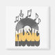 Ilustração do design de texto "Música" com grunge de estilo retroativo com decoração de gravações de vinil e notas de música