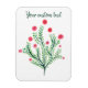 Íman personalizado floral bonito com desenho a tinta e a aquarela de uma planta de primavera de abstrato, em rosa e verde sobre fundo branco personalizável e texto personalizável.