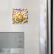 Description at a splash of springtime joy to your kitchen with this enchanting happy Easter decorative magnet. This high-quality square magnet features a fluffy yellow chick perched on a glowing golden egg surrounded by a magical field of decorated Easter eggs and a sweet white bunny set against a dreamy rainbow sky this colourful scene is perfect for holding up recipes holiday cards or your favourite