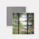 Linda Janela de Vidro de Arte Nouveau Contida por Tiffany das Flores Iris em um Fluxo está neste Magneto. A imagem é dominio público devido a direitos autorais expirados.