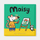 A pintura é divertida e confusa! Nesta imagem de "Maisy Goes to Preschool" (publicada pela Candlewick Press e ilustrada por Lucy Cousins), o Sr. Peacock e Dotty exibem orgulhosamente algumas pinturas acabadas enquanto Maisy trabalha duro em criar uma casa pintada verde. Maisy e Dotty parecem ainda mais bonitos do que o habitual com pedaços de tinta por toda a sua roupa!