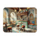 Presente perfeito para o amante de viagem e café. A pintura aquarela captura a vibrante e culturalmente rica ambição de um pequeno compro de café em Fez, Marrocos. O interior apresenta intrincadas paredes em forma de mosaico em tons de azul, verde e branco, que criam uma atmosfera tradicional e convidativa. As mesas de madeira pequenas, com ornamentado metálico e fezes de baixo abaulamento, são dispostas num formato confortável. Um balcão de madeira rústico exibe um tradicional pote de café de latão, uma bandeja de vidros de hortelã e uma variedade de pastos marroquinos. O teto é adornado com lanternas que lançam padrões de luz intrincadas, melhorando o brilho quente do espaço. As cerâmicas tradicionais marroquinas e os têxteis tecidos decoram as paredes, acrescentando profundidade e textura. A luz do sol filtra através de uma janela em arco, iluminando as cores vivas e os detalhes intrincados, encapsulando a essência deste charmoso café marroquino.
