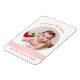 Trendy, elegante e personalizada nova menina, é um ímã fotográfico flexível para usar em vez de um anúncio de nascimento no papel para um tio favorito. Inclui um quadro branco com uma abertura redonda para uma fotografia horizontal personalizada, os estádios de nascimento do bebê e uma banda cor-de-rosa curvada, na qual figuram os primeiros e médios nomes (ou os primeiros e sobrenomes) da pequena fotografia num guião/tipografia elegante. Esta design inclui as palavras "Eu te amo, tio Jase!", que você pode personalizar, é claro.