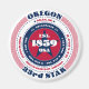Esta design com o tema do estado mostra o nome do estado "Oregon" junto com outras informações, como sua capital, apelido para residentes, região, fuso horário e coordenadas geográficas. É útil para várias ocasiões, de feriados nacionais a partidos patrióticos. O esquema ousado e patriótico de cores e a exibição proeminente do nome do Estado fazem dele uma lembrança ou um presente excelente.