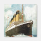 A ilustração feita pelo artista do Titanic da White Star Line no mar, uma imagem clássica da era do ouro de navio a vapor.