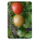 Este incrível ímã mostra uma fotografia de um monte de tomate amadurecendo incluindo um tomate vermelho, laranja e verde de cereja em uma linha, crescendo em uma fábrica de tomate em um jardim suburbano. A fotografia foi tirada usando macro fotografia para um resultado detalhado.
