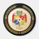 O casaco de braços de Tonga é colocado no meio de um círculo de ouro falso que se situa entre dois ramos de ouro, que são também ouro falso.
