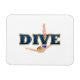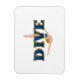 Apenas a palavra simples, Dive, em texto azul vibrante e gráficos opcionais de mergulho, homem ou mulher, em t-shirts, camisas, botões, ímãs e outros presentes. Excelente para o mergulhador, treinador ou pai, ou qualquer um que queira mergulhar na vida com gusto.
