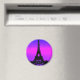 Torre Eiffel, um marco francês, com um fundo rosa e roxo