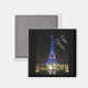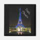 Uma visão cênica de Paris, França. O famoso marco, a torre do Effel, vista à noite iluminada por luzes azuis brilhantes.
