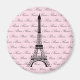 A Torre Eiffel senta-se sobre um fundo "Paris" rosa e preto