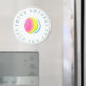 Uma aquarela bonita de uma bola de brinquedo listrada de um gato, com a questão do gato de "Buscar alguém?"