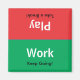 Anônimos de trabalho/brincadeira em cores vermelhas e verdes. Este ímã divertido ajudará a lembrá-lo de fazer uma pausa, ou, voltar ao trabalho.